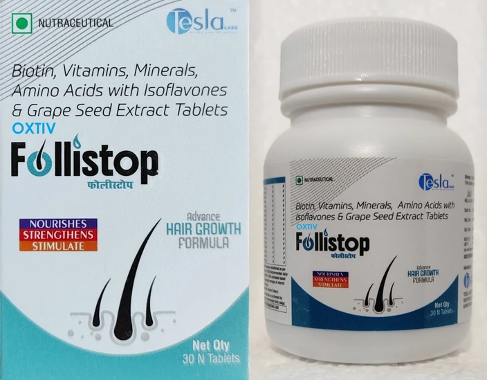 Follistop Tablet is a multivitamin supplement formulated with biotin, amino acids, vitamins, minerals, and natural extracts, which can help strengthen the hair and promote growth. The tablet works by promoting hair growth at cellular levels within the scalp. It can be beneficial for reducing hair fall, strengthening the hair roots, and nourishing the follicles.